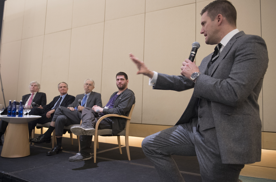 WASHINGTON, DC – NOVEMBER 20: (L-R) Discussion panelists Peter Brimelow, Jared Taylor, Kevin MacDonald, « Millenial Woes » (thats the name he goes by) and Richard Spencer field questions at an Alt Right ( alternative right) conference hosted by the National Policy Institute in Washington, DC on November 18, 2016. The think tank promotes white nationalism and critics accuse them of being racist and anti-semitic. The chairman of the National Policy Institute, Richard Spencer, has been permanently banned from entering the UK, and was deemed a « national security threat » after his arrest in Hungary in 2014. He was recently banned from Twitter in a prominent purge by the company this week. (Photo by Linda Davidson/The Washington Post via Getty Images)
